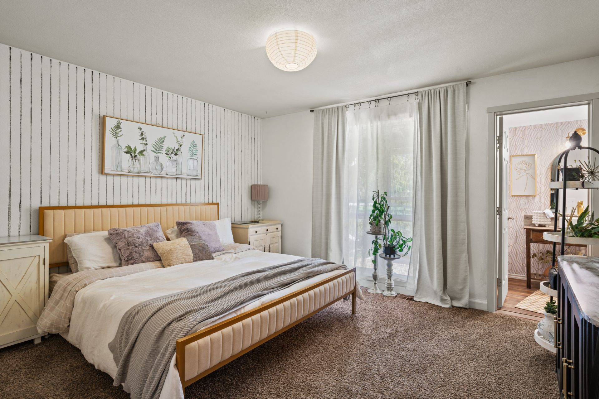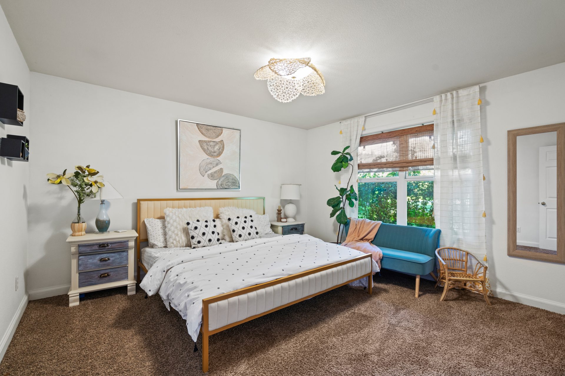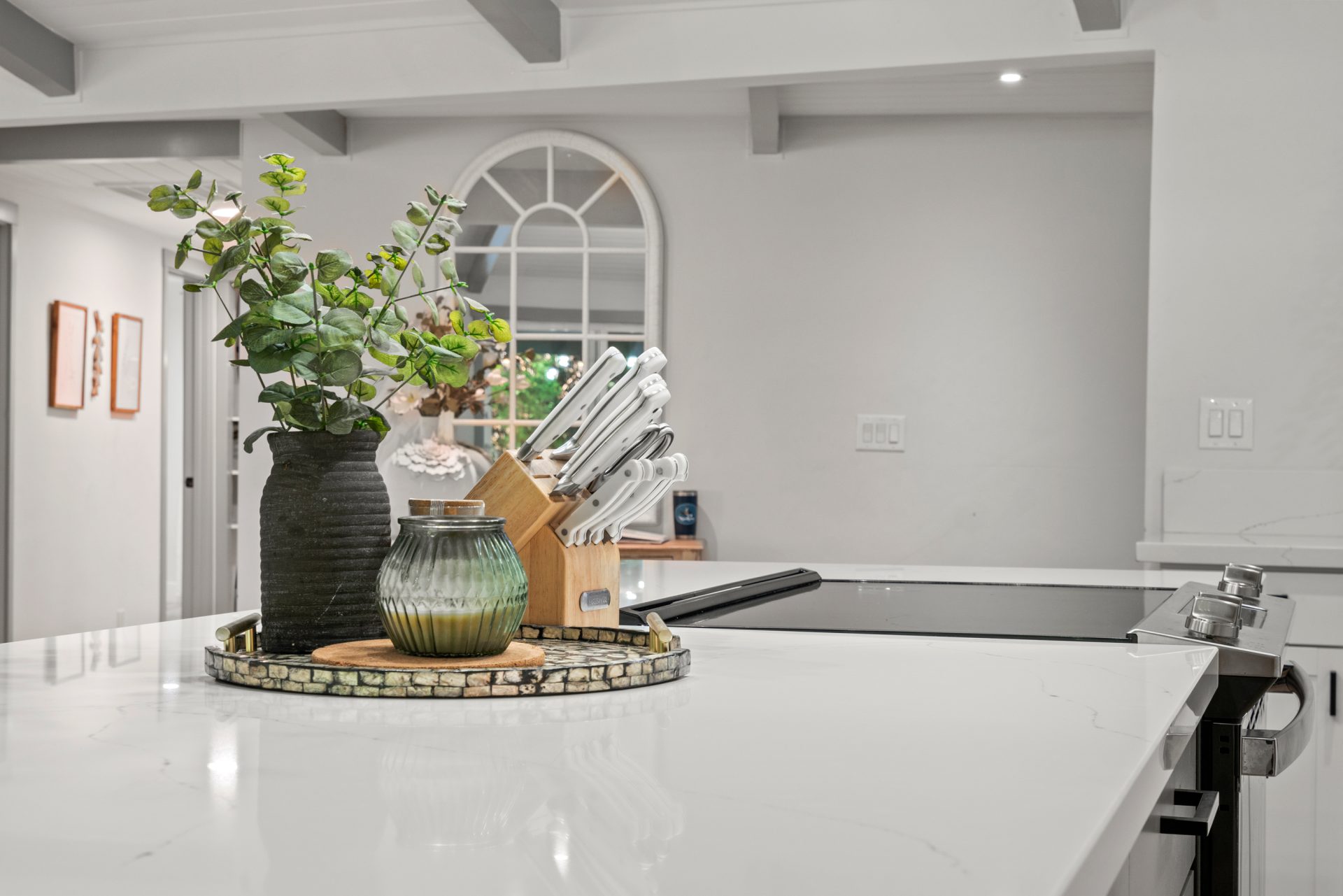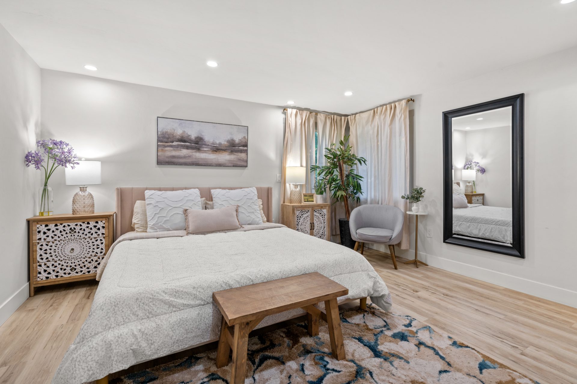 The kitchen is bright and modern, featuring a large island and generous cabinetry—perfect for cooking and gathering. Three bedrooms and three full baths include a comfortable primary suite and two guest rooms, while a flex room doubles as an extra sleeping or recreation space.