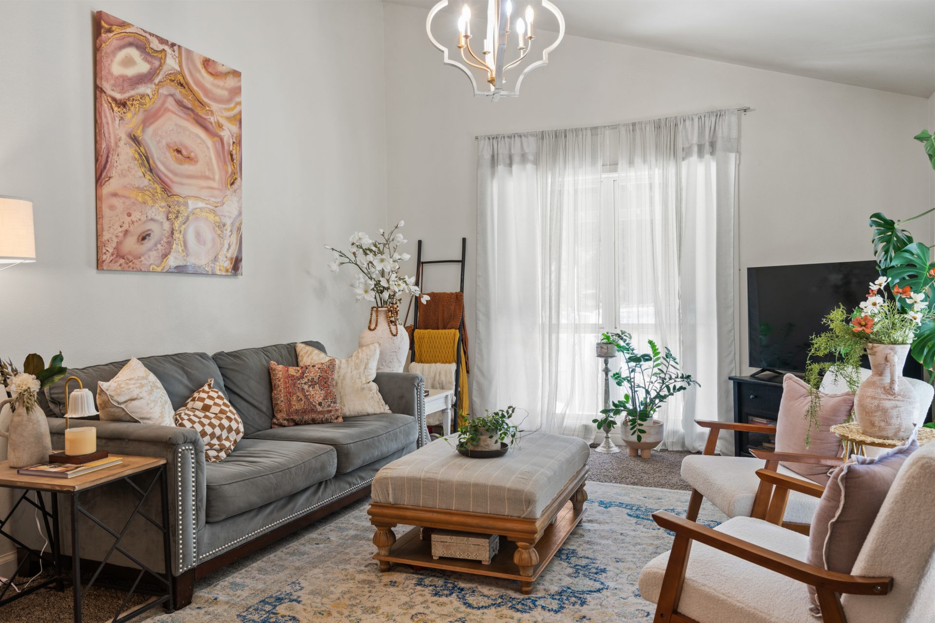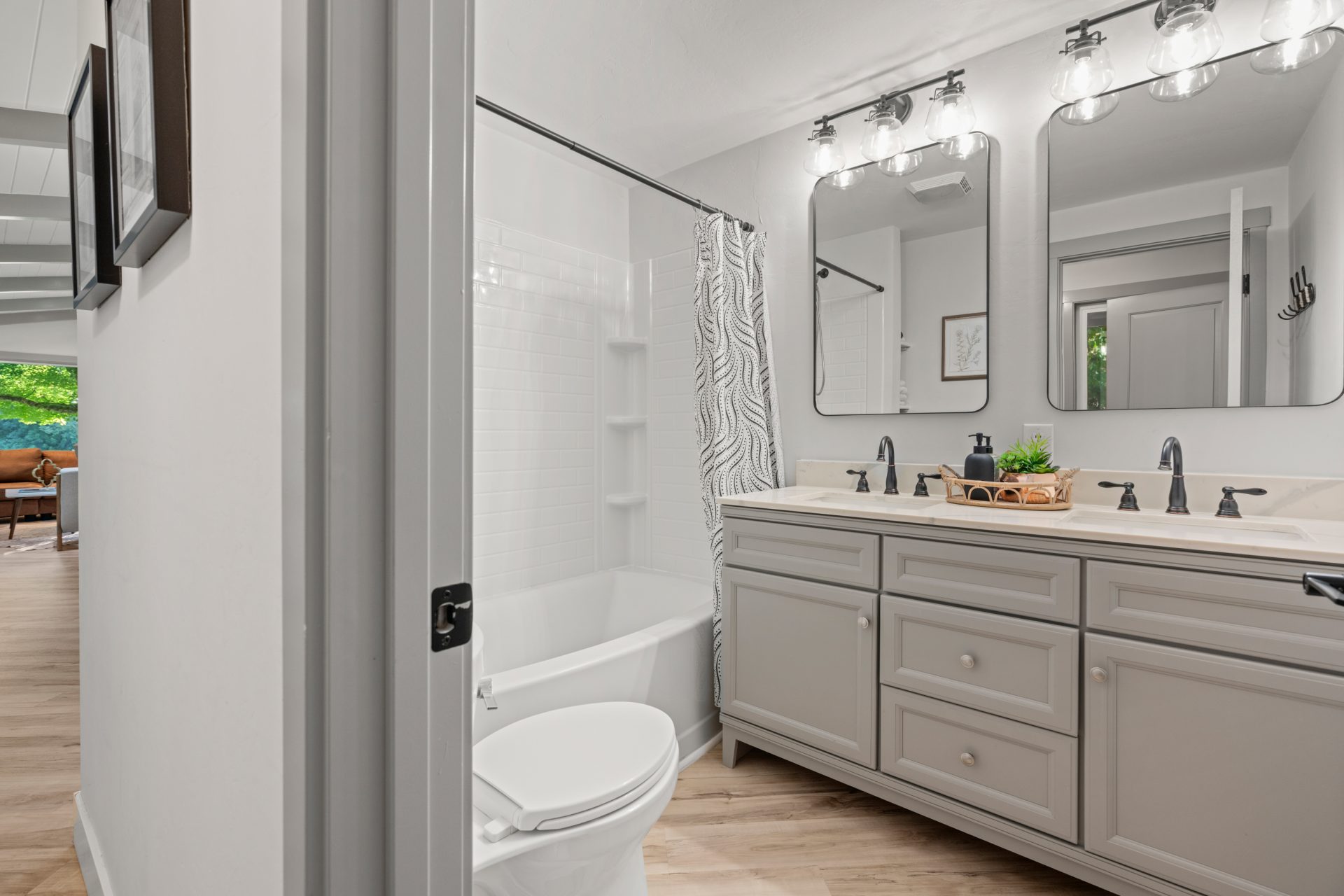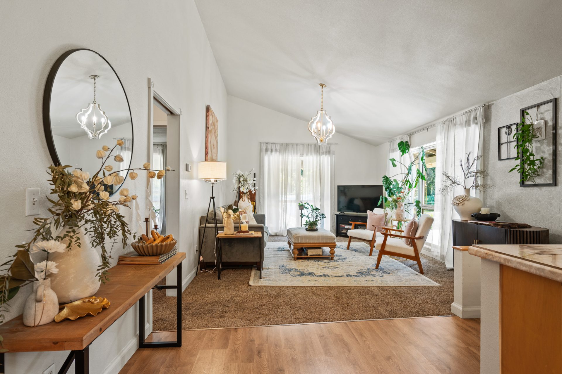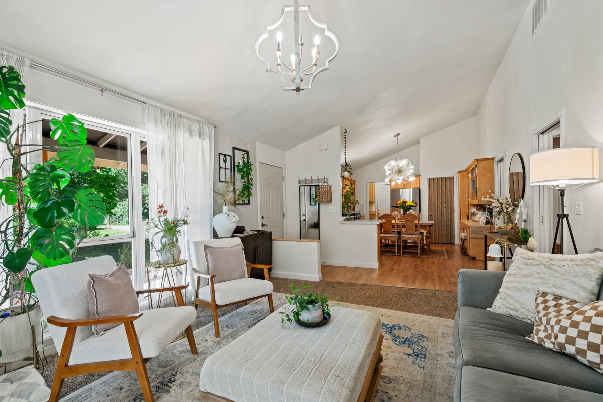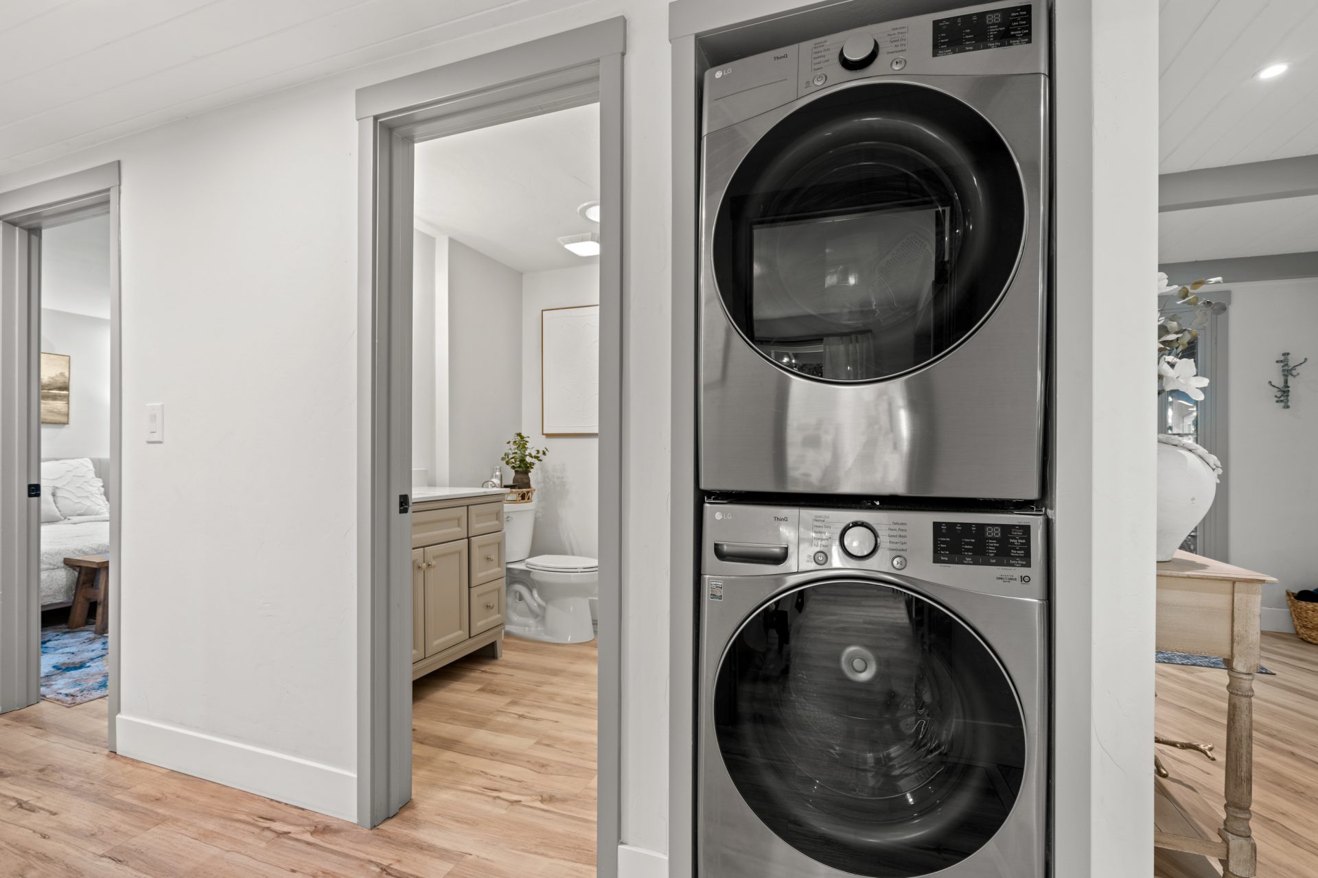 Built in 1995, the second home offers light-filled elegance and vaulted ceilings. The open layout connects kitchen, dining, and living spaces, creating an easy flow for everyday life. Two bedrooms are supported by one and a half baths, including a main bath with a soaking tub and separate shower.