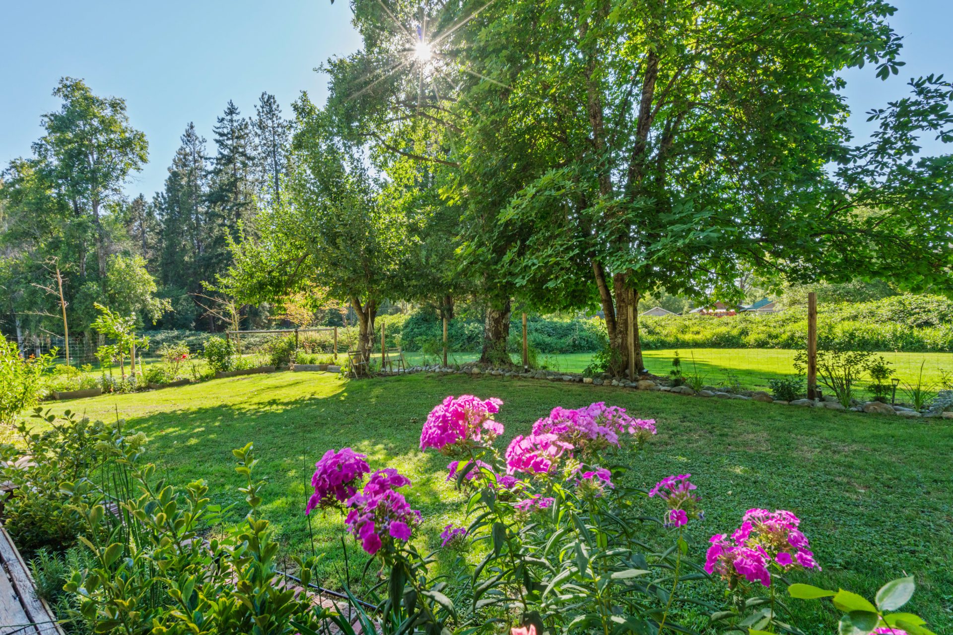 Set on 4.55± acres along the Applegate River, this Southern Oregon retreat captures the peace and rhythm of life by the water. The land unfolds gently toward approximately 200 feet of river frontage, framed by mature trees, lush lawns, and a small pond that mirrors the surrounding landscape. With two legal homes, a barn, and a chicken coop, this property blends comfort, versatility, and the natural beauty of the Applegate Valley.