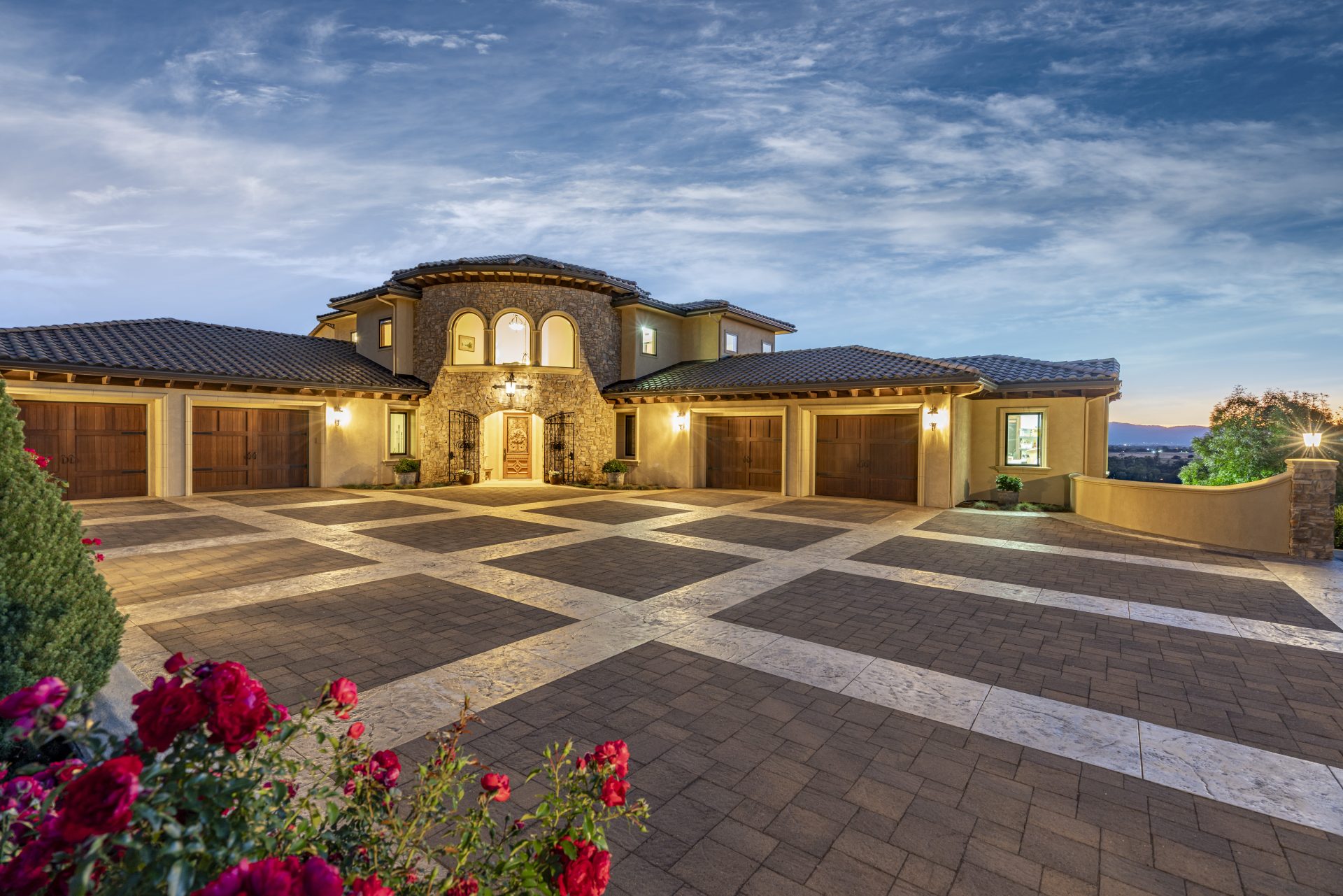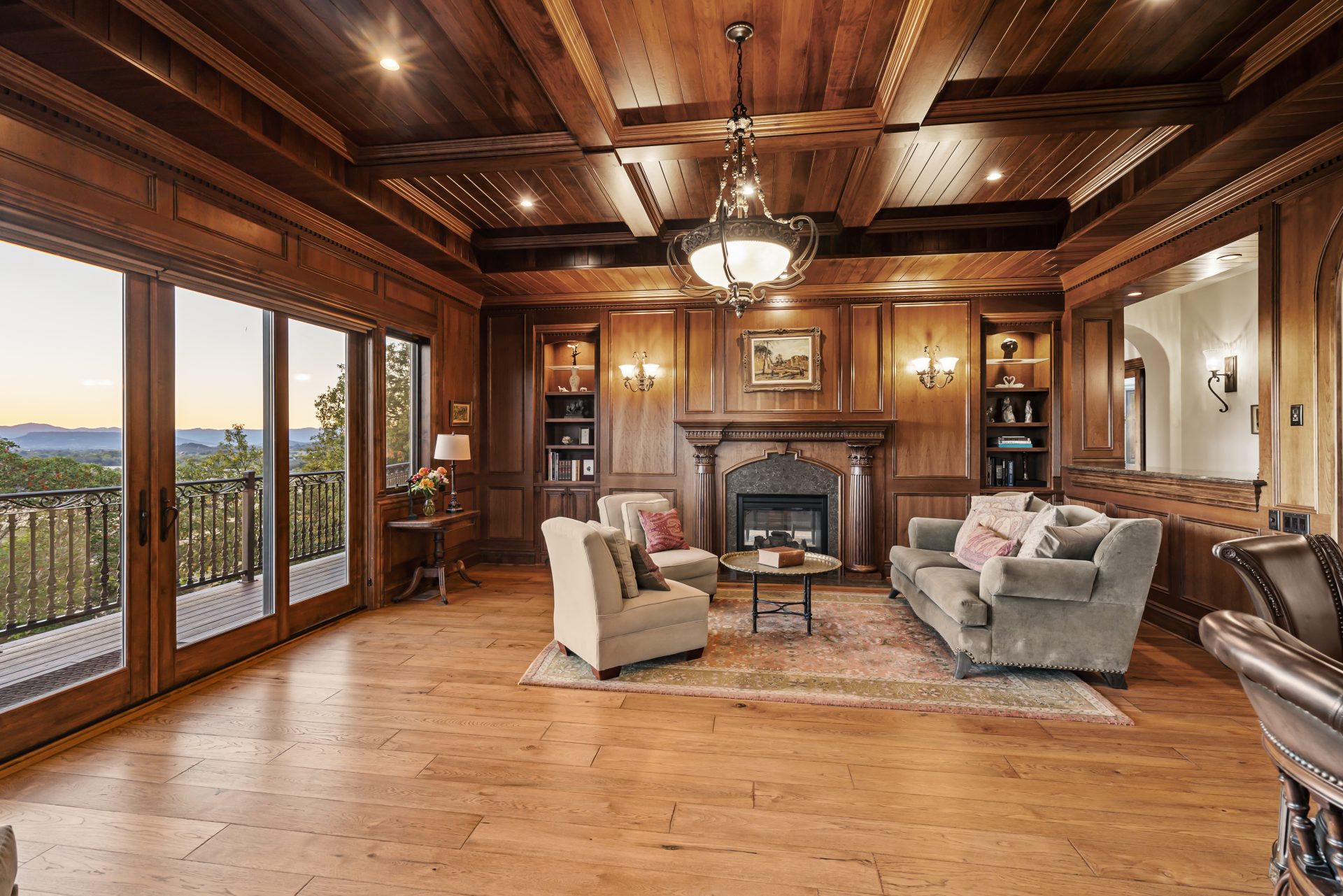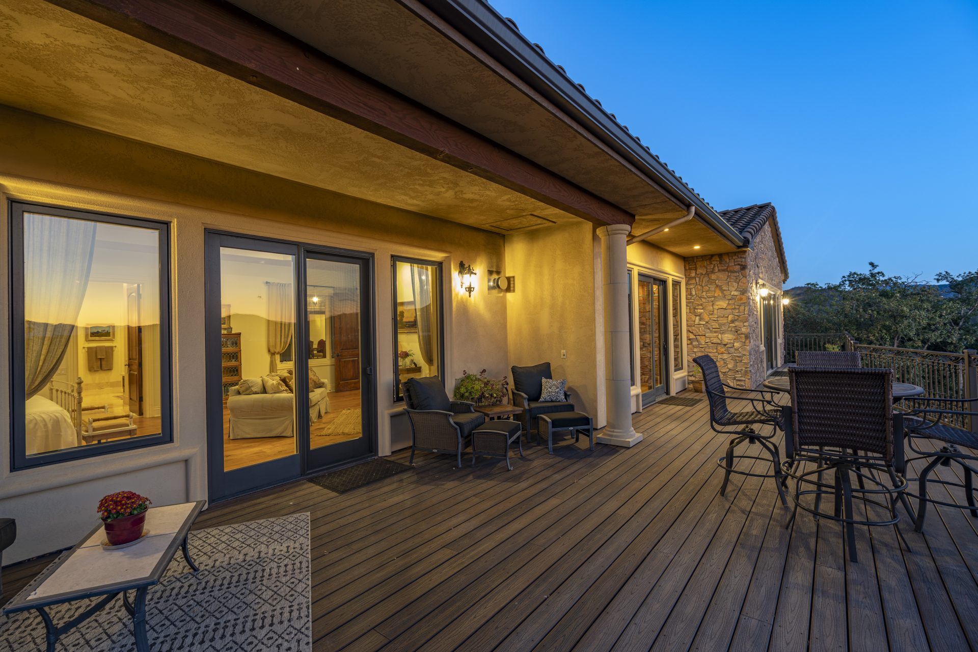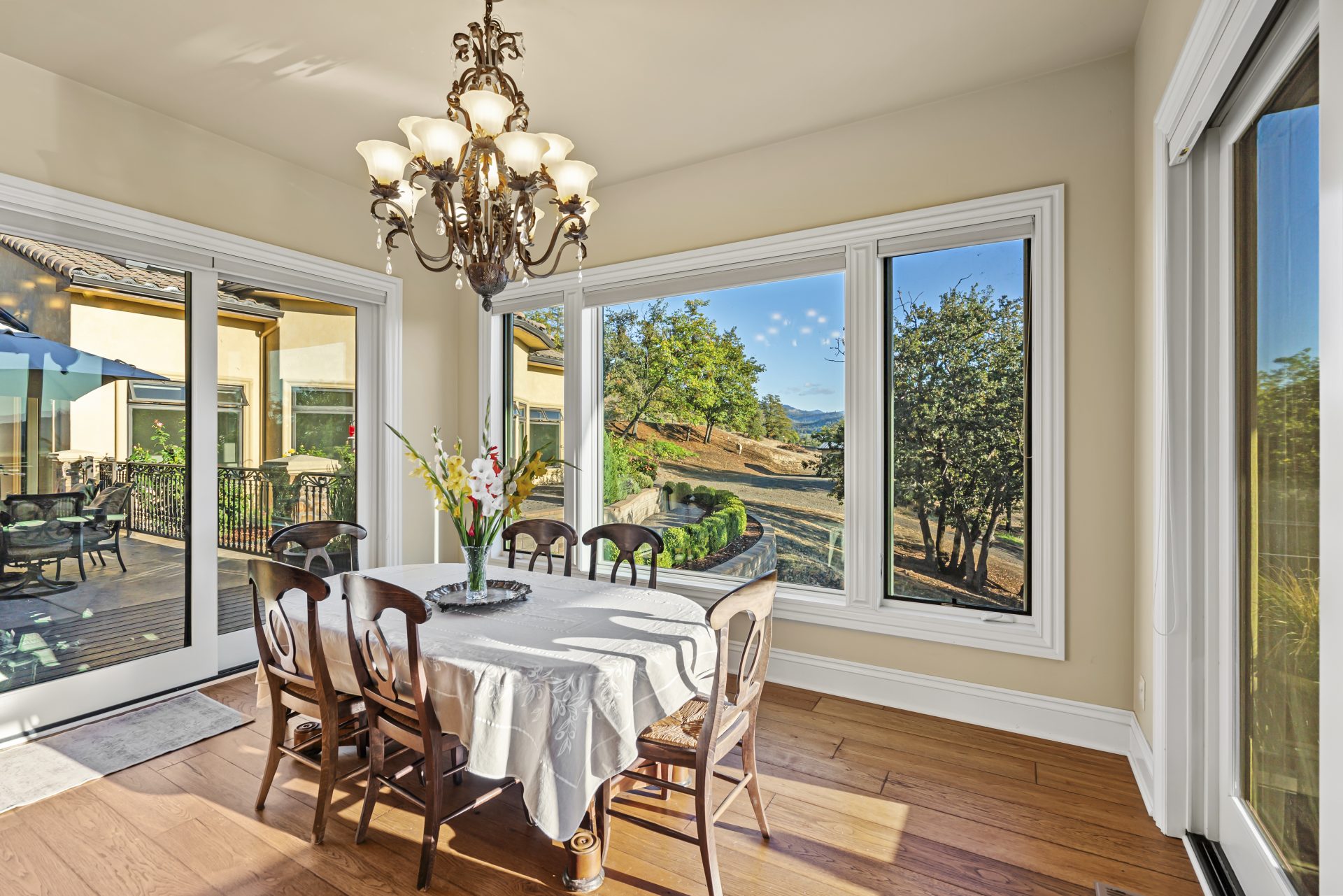 To the west, the family room offers a warm and inviting atmosphere with a custom library, wet bar, and sweeping views of the vineyard and distant mountains plus french doors lead to the vineyard deck with great views. The adjacent executive office is an elegant workspace designed for both focus and inspiration.