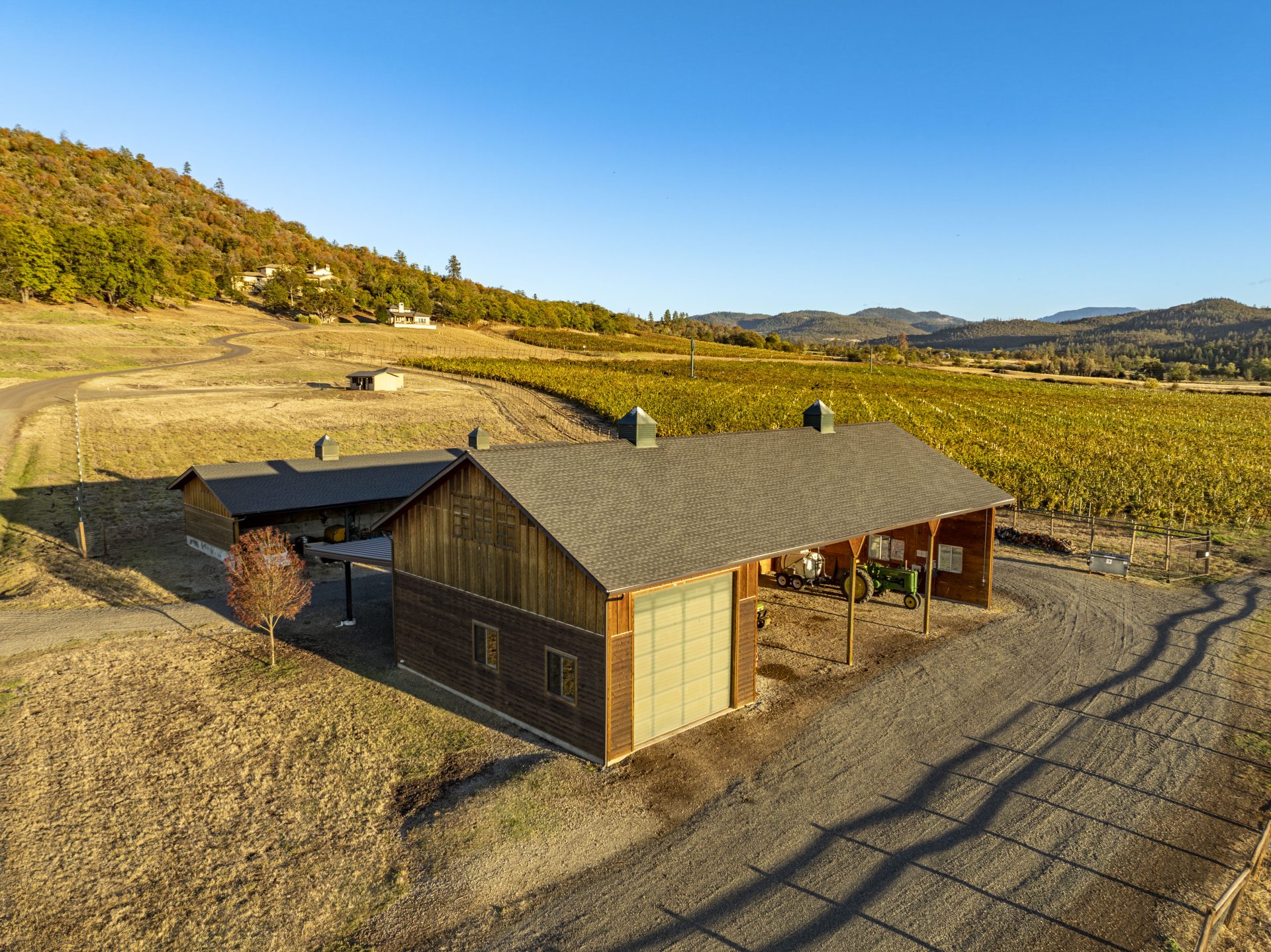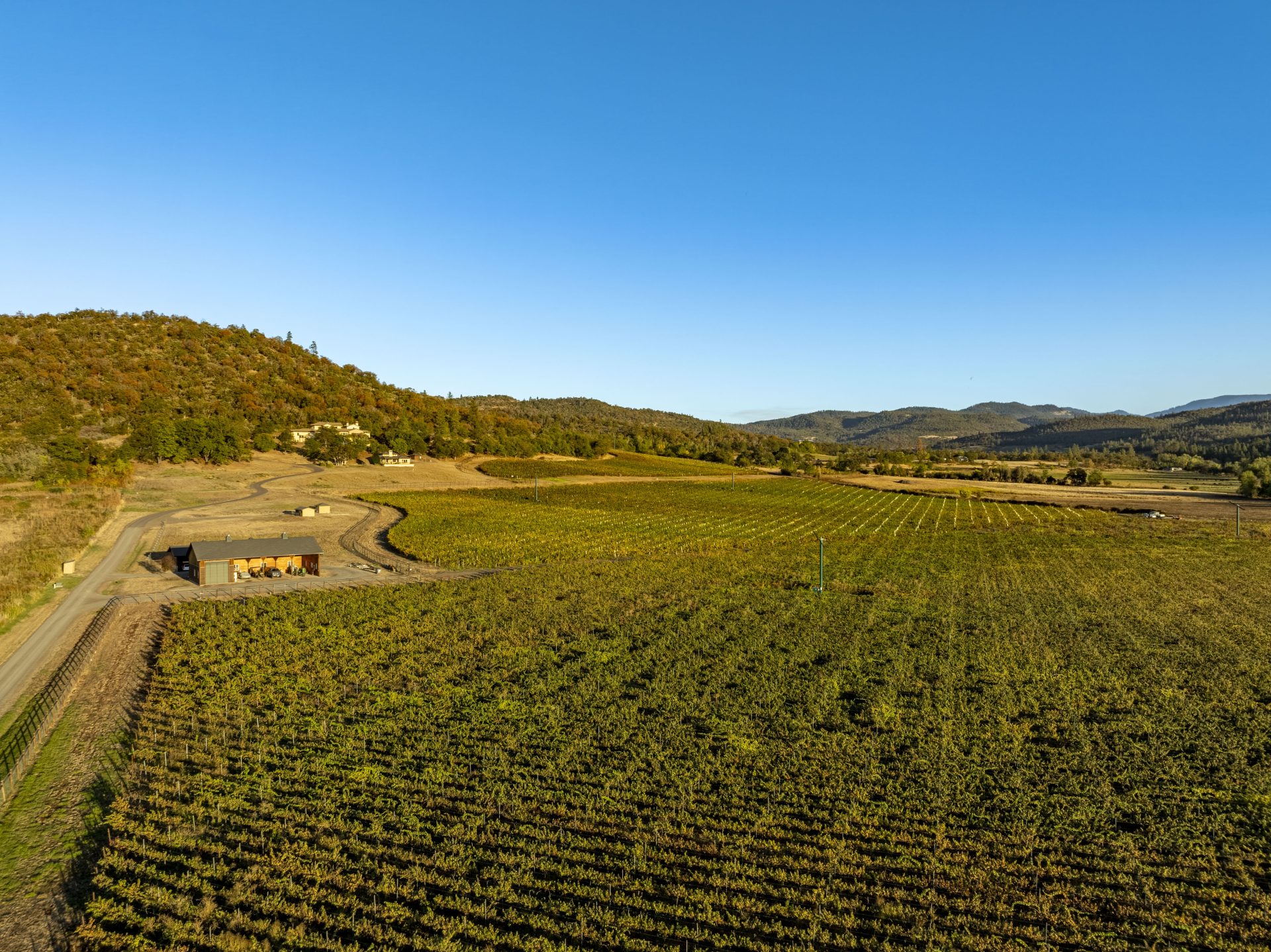 The property includes Celtic Moon Vineyards, a 42.5-acre vineyard in the Rogue Valley AVA near Eagle Point. Established in 2014, it sits on gently sloping, southwest-facing terrain with good sun exposure and soils. The vineyard is fully fenced and designed for efficient, mechanized operation. There are multiple varietals, including Pinot Noir, Syrah, Chardonnay, Viognier and more. Planted on 7’ x 4’ spacing with a Vertical Shoot Position (VSP) trellis system, the vineyard also uses drip irrigation. Frost protection and monitoring systems include five wind machines and two weather stations.