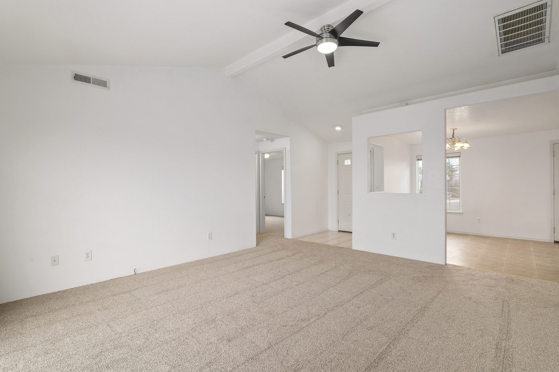 Welcoming 3-bedroom, 2-bath single-level home with 1,209 sq ft of comfortable living space and an attached 2-car garage. Inside, you’ll appreciate the fresh interior paint and new carpet throughout, creating a clean, move-in-ready feel from day one. The open living area features vaulted ceilings and double pane windows that invite in natural light. The kitchen offers an eating nook perfect for casual meals, homework, or morning coffee. Stay comfortable year-round with efficient double pane windows and air conditioning for the warmer months. Outside, the fenced yard provides room for pets, play, gardening, or simply relaxing, with space to personalize to your needs. A practical floor plan, modern essentials, and low-maintenance livability make this a great option for first-time buyers, downsizers, or anyone looking for a nicely kept single-level home in a convenient location.