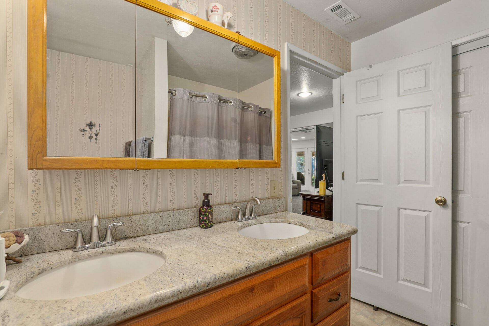 Just a short walk from the main home are a number of outbuildings including a carport/workshop with power and a storage shed perfect for quads, tools, and lawnmowers. In addition, there is a two-story guest quarters that is well appointed. The space has an efficient floor plan with tile flooring.